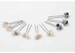 Uピンのトップにボリュームビジューを集めたデザイン(ブーケ)と、